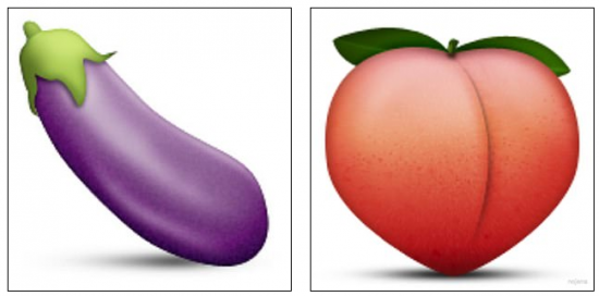 가지 이모지(좌), 복숭아 이모지(우)/사진=영국 데일리메일 화면 캡처