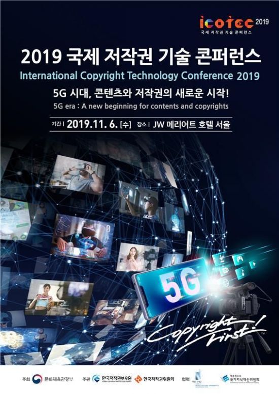 [아시아경제 김흥순 기자] 5세대 이동통신(5G) 상용화와 1인 미디어 확산에 따른 저작권 기술의 문제점을 고민하는 국제 학술대회가 열린다. 문화체육관광부가 주최하고 한국저작권보호원과 한국저작권위원회 주관으로 6일 서울 서초구 JW 메리어트 호텔 서울에서 열리는 2019 국제 저작권 기술 콘퍼런스(ICOTEC)다.