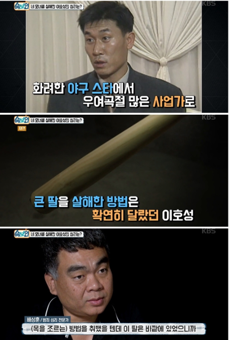 KBS 2TV '속 보이는 TV인사이드'는 해태 4번타자 출신 야구선수 이호성이 내연녀와 내연녀의 세 딸을 살인했던 사건을 재조명했다.