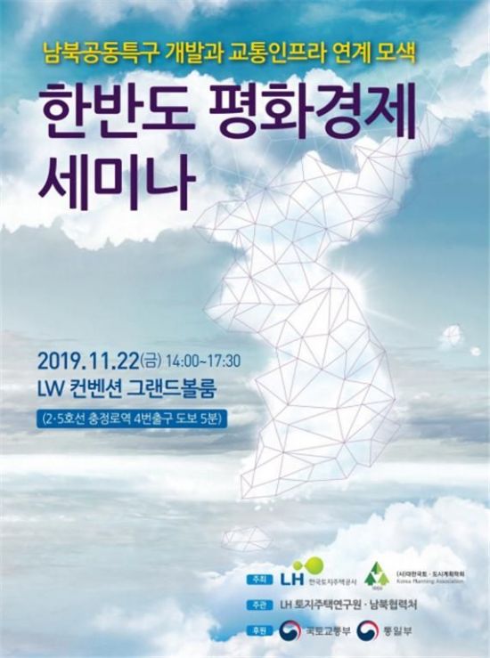 LH는 대한국토·도시계획학회와 공동으로 22일 서울 중구 소재 LW컨벤션 그랜드볼룸에서 ‘남북공동특구 개발과 교통인프라 연계 모색’을 주제로 세미나를 개최한다고 20일 밝혔다.