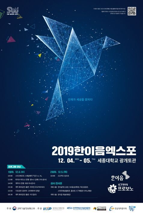 정보통신기획평가원(IITP)이 오는 12월 4일부터 12월 5일까지 양일 간 세종대학교 광개토관에서 ‘인재가 세상을 밝히다’라는 슬로건 아래 ‘2019 한이음 엑스포’를 개최한다.