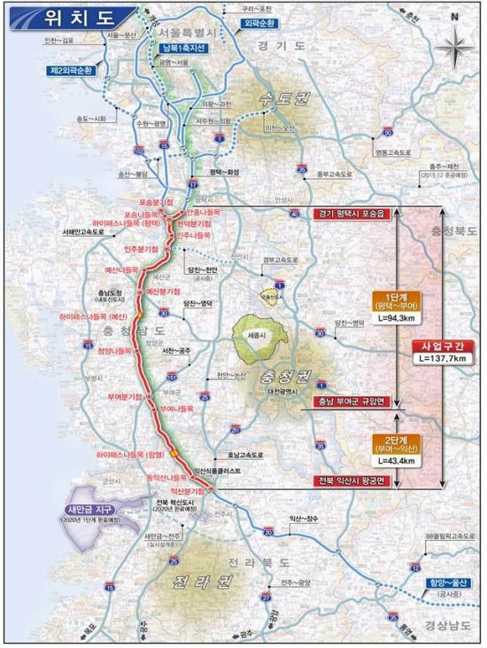 평택~부여(1단계, 94.3km), 부여~익산(2단계, 43.4km) 단계별 착공