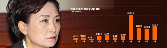 최근의 집값 상승은 유예기간이 끝나고 내년 4월 상한제가 본격 적용되면 주택 공급이 급감, 결국 집값이 오를 것이란 기대에서 비롯됐다. 이 같은 분위기는 청약시장에서도 마찬가지다. 지난 1~7월까지 11만2055명이었던 서울지역 아파트 청약자 수가 상한제 이슈가 불거진 8월부터 11월 사이 4개월간 16만844명으로 급증한 것에서 명확히 드러난다. 한달 평균 기준으로는 2.5배나 늘어난 수치다. 청약경쟁률도 1~7월엔 평균 14.5대 1이었으나 8~11월엔 77대 1로 약 5배나 뛰었다.