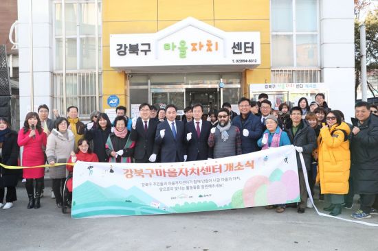 [아시아경제 박종일 기자] 강북구(구청장 박겸수) 마을자치센터가 지난 6일 개소식을 개최했다. 올 8월부터 운영돼왔던 센터는 구의 마을공동체 활성화와 지속가능한 주민자치 환경 조성을 위한 사무를 관장하는 기관이다.