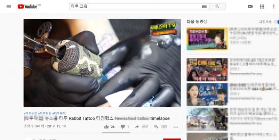 26일 오전 유튜브에 '타투 교육' 등의 키워드를 입력하면 문신 시술을 교육하는 영상 수십개가 노출된다. 이들 영상은 입문자를 위해 문신 시술 장비를 고르는 법부터 시작해 장비 셋팅 방법, 문신 시술 방법 등을 소개한다. 더 나아가 심화과정으로 다양한 색상의 타투를 하는 방법과 타투 커버업(기존 문신 위에 새로운 문신을 것) 방법까지 교육했다. 실제 타투를 하는 모습을 보여주며 실전에 사용할 수 있는 시술 방법까지 교육하는 영상도 존재했다.