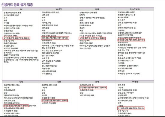 온라인결제 등록 불가업종 지정