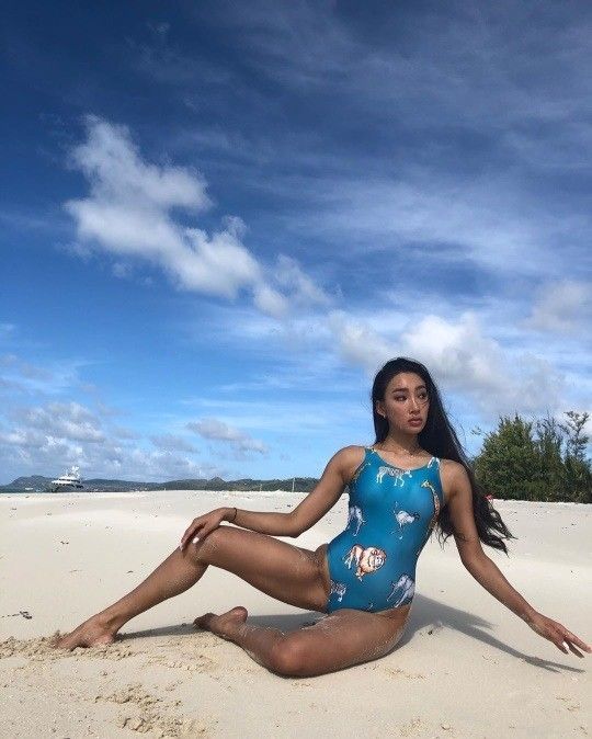 공개된 사진 속에는 문가비가 해변에서 수영복을 입은 채 앉아 포즈를 취하고 있는 모습이 담겨 있다. 군살 하나 없는 완벽한 수영복 몸매가 시선을 끈다.