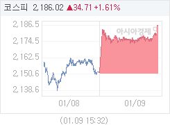 1월 9일 코스피, 35.14p 오른 2186.45 마감(1.63%↑)