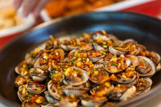 커다란 은쟁반을 가득 메운 양념 꼬막의 비주얼은 모두를 기립 박수치게 만든달까.