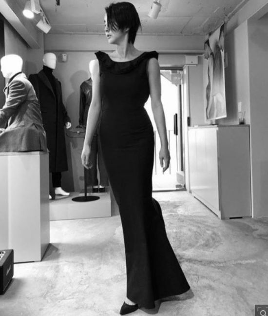 그녀는 자신의 SNS에 몸매 라인이 드러나는 검정 드레스를 입은 인증샷을 게재했다.