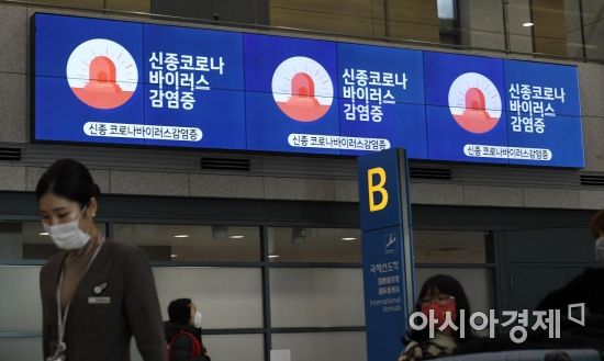 [포토] 입국장 전광판에 안내되는 신종 코로나바이러스