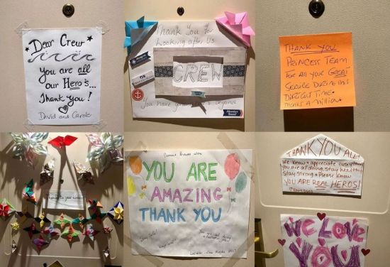 타임에 따르면 크루즈선 내에는 영어뿐만 아니라 10여 개국의 언어로 감사 인사를 적은 쪽지도 있다. 승무원들의 국적이 다양하다는 것을 알고 각 언어를 찾아 감사의 마음을 전한 것으로 보인다.