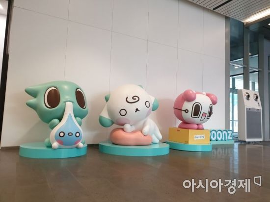 [아시아경제 부애리 기자] 엔씨소프트 판교 사옥에 위치한 기자실을 다니던 기자의 눈에 어느날 거대한 캐릭터 동상들이 들어왔다. 얼마 전에 왔을 땐 없었는데 "누구냐 넌?". 사옥 내 위치한 어린이집 학생들에게 포토존으로 인기만점인 이 동상은 엔씨소프트의 캐릭터 브랜드 '스푼즈'다. 이들은 캐릭터박람회나 외부행사 등으로 종종 출장을 나간다. 그 때를 제외하고 사옥 1층 로비를 든든하게 지키고 있다.