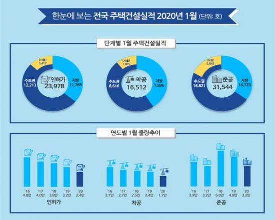 국토부는 "신정 및 설 연휴 등 공휴일이 많아 인허가 실적이 감소한 것으로 추정된다"고 설명했다.