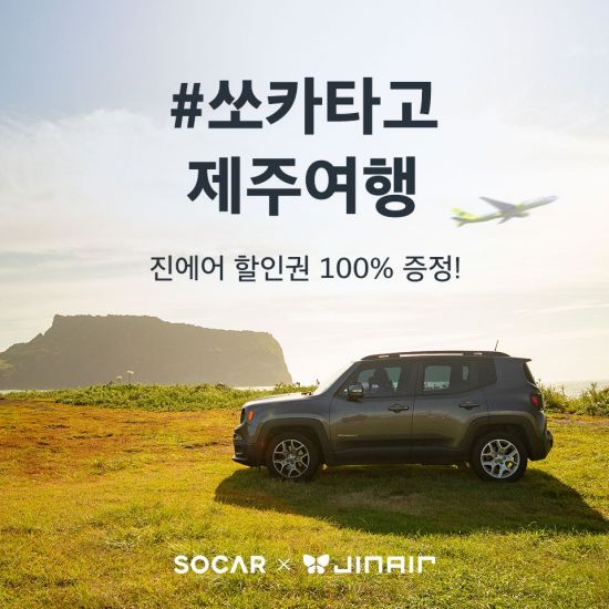 양사는 다음달 26일까지 한 달간 제주로 국내 여행을 떠나는 고객들에게 할인 혜택을 제공한다. 쏘카스테이션 제주 차량을 48시간 이상 예약하는 고객에게 진에어 제주 노선(국내선, 출발지 무관) 5000원 할인권을 증정한다. 할인권은 7월26일 탑승까지 유효하며, 왕복 항공 운임 4만원 이상 예약 시 사용할 수 있다.