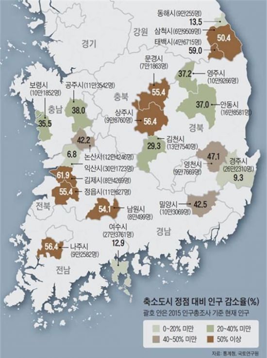인구감소 인한 지방도시의 축소