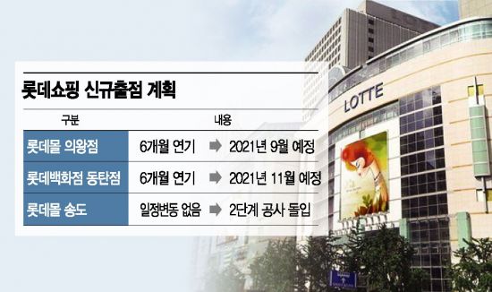 신종 코로나바이러스감염증(코로나19) 악재까지 겹치며 신규 점포 출점도 미룬다. 롯데쇼핑은 오는 2021년 3월 준공 예정이었던 '롯데몰 의왕점'은 최대 6개월 연기할 가능성이 있다.경기도 의왕시 학의동 일대에서 공사가 진행중이던 롯데몰 의왕점은 부지 7만1208㎡(2만1540평)의 지하 2층, 지상 4층 규모 판매시설이다.