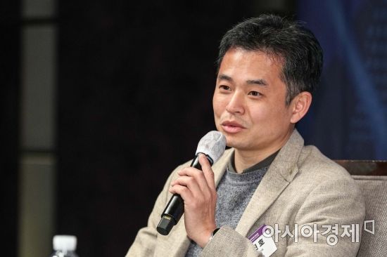 최진호 리모트몬스터 대표가 28일 서울 중구 조선호텔에서 열린 '2020 아시아미래기업포럼'에 참석해 '포스트 코로나19, 비즈니스 혁신과 기회'란 주제로 토론하고 있다./강진형 기자aymsdream@