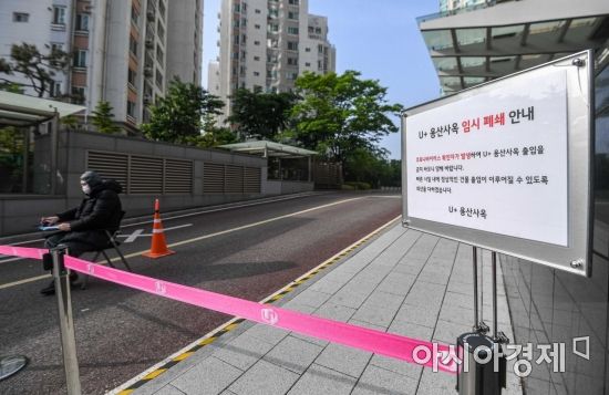 이태월 클럽발 코로나19 확산이 우려되고 있는 11일 서울 용산구 LG유플러스 사옥이 코로나19 확진자 발생으로 사옥을 임시 폐쇄하고 있다./강진형 기자aymsdream@