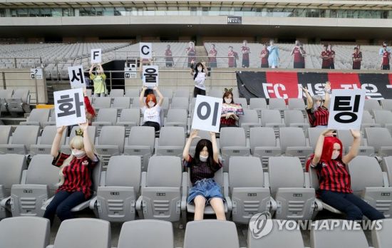 앞서 FC서울은 지난 17일 무관중으로 열린 광주FC와의 홈 개막전 경기에서 현장감을 살리겠다는 취지로 관중석에 마네킹 수십개를 배치했다.