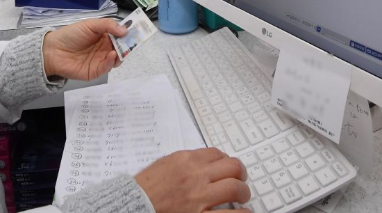 '마스크 5부제'가 시행된 9일 서울 종로구의 한 약국에서 이날 마스크 구매자들의 이름과 주민등록번호를 적어놓은 메모가 보이고 있다. 이날부터 약국에서 공적 마스크를 출생연도 끝자리에 따라 정해진 요일에 1인당 2매만 살 수 있다. 만 10세 이하 어린이와 만 80세 이상 노인을 위한 대리구매도 가능하다./김현민 기자 kimhyun81@
