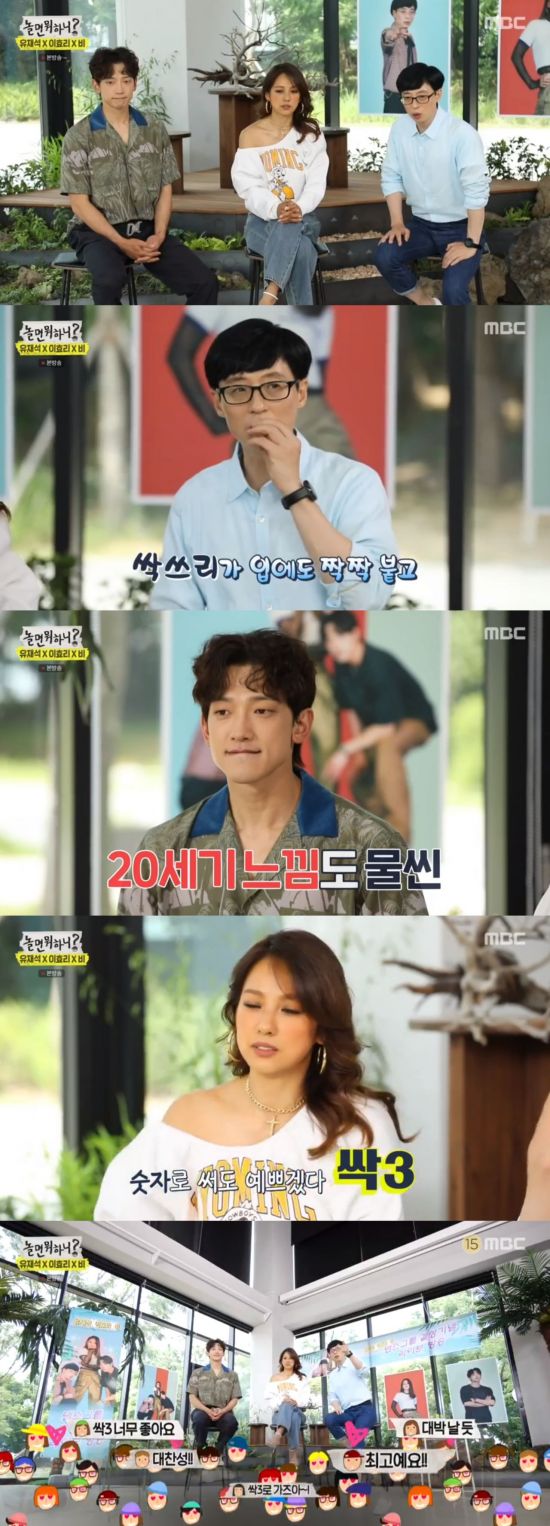 특히 비는 "주에 한 번 씩 만나는게 예전 느낌이 나서 설렌다. 그때 당시 효리 누나 만날때 누나는 잘 모르겠지만 무대할 때마다 설렜다"고 털어놨다. 그러자 이효리가 "그때 대시를 했었어야지"라고 답해 유재석으로부터 "토크가 상당히 찐하다"는 반응을 얻었다.