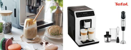 400번 저어 만드는 레시피로 유명한 달고나 커피의 경우 테팔 전자동 에스프레소 머신 ‘에비던스’와 테팔 핸드블렌더 ‘퀵쉐프’를 이용하면 더욱 간편하게 만들 수 있다.