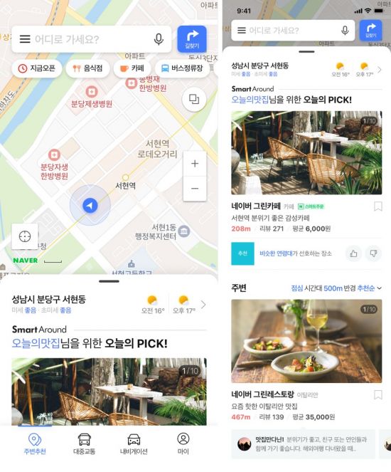 [아시아경제 부애리 기자] 네이버가 인공지능(AI) 장소 추천 서비스 '스마트어라운드'를 네이버 지도에 탑재한다고 13일 밝혔다.