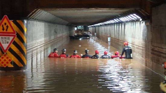 한편 신고를 받고 출동한 소방 구조대가 현장에 도착했을 때는 지하차도 2.5m 높이까지 물이 차오른 상태였다. 이 차도의 출입구 높이는 3.5m다.