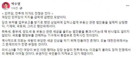 박 의원은 29일 페이스북에서 "여당인 민주당이 지지율 급락에 급했던 모양"이라며 이같이 말했다.