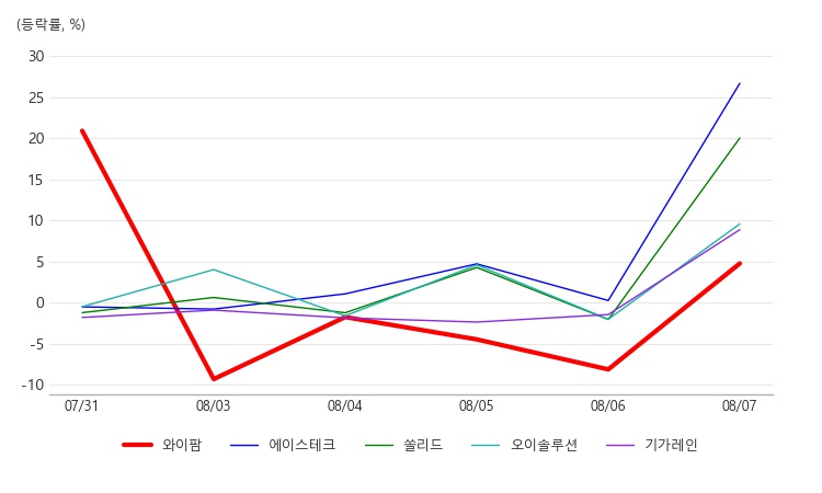 [그래프] 5G(5세대 이동통신) 테마 주요 종목 등락률