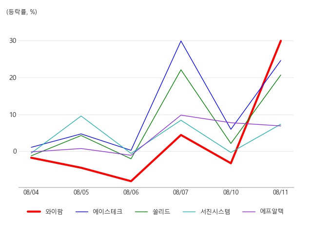 [그래프] 5G(5세대 이동통신) 테마 주요 종목 등락률