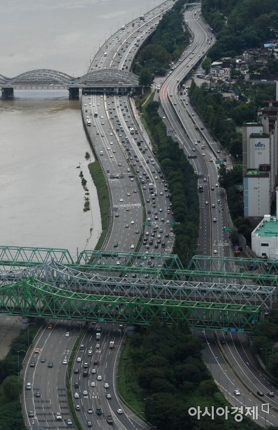 [아시아경제 조인경 기자] 폭우는 잠시 그쳤지만 높아진 한강 수위로 서울시내 도로 곳곳에서 통제가 이어지고 있다.