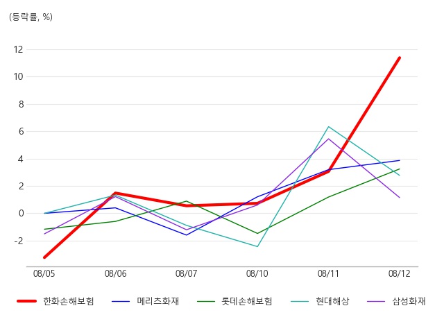 [그래프] 손해보험 테마 주요 종목 등락률