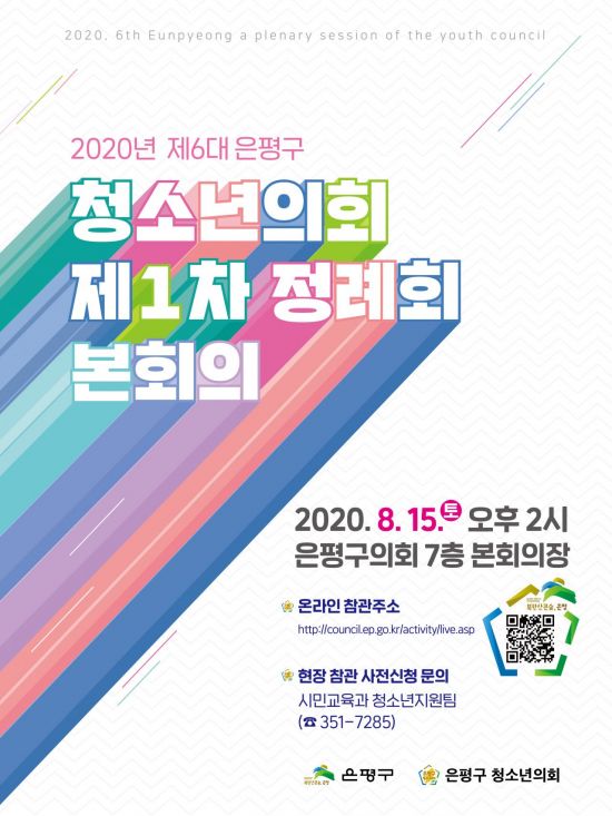 이번 본회의는 코로나19 여파로 인해 연기한 은평구 청소년의회 제5대 수료 및 제6대 위촉식을 겸해 개최, 은평구의회 홈페이지를 통해 생중계할 예정이다.
