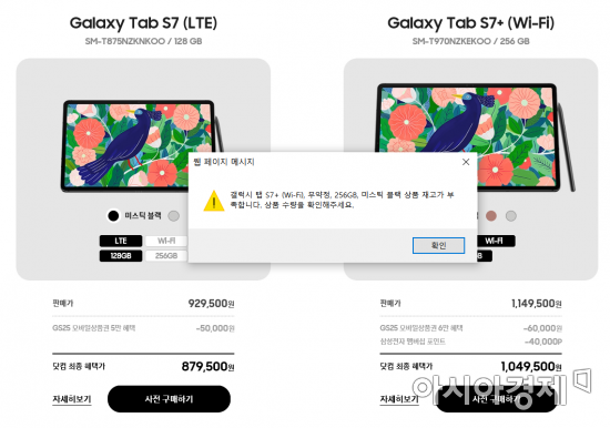 19일 삼성전자 등에 따르면 삼성닷컴과 쿠팡, 위메프 등에서 18일부터 시작된 갤럭시탭S7 시리즈 사전예약 온라인 물량이 모두 소진됐다.