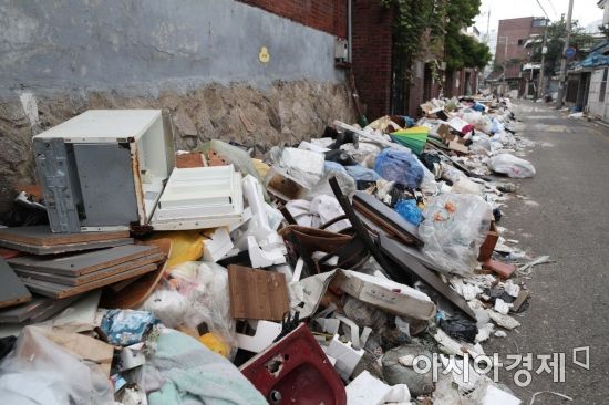 20일 서울 성북구 사랑제일교회 인근 주택가에 쓰레기가 나뒹굴고 있다. 사랑제일교회는 장위10구역 재개발 구역에 있어 철거가 예정된 상태다. 이 구역 주민 99%는 이주를 마친 상황이지만 사랑제일교회는 서울시토지수용위원회가 보상금으로 책정한 82억원의 7배에 가까운 563억원을 요구하며 퇴거를 거부하고 있다. /문호남 기자 munonam@