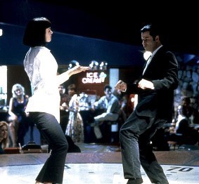 타란티노는 오우삼 감독의 조감독이 되어 '영웅본색' 같은 영화를 찍고 싶어 하며 하비 케이틀, 브루스 윌리스, 새뮤얼 잭슨, 팀 로스 등 자신이 좋아하는 배우들과 함께 영화에 출연하는 것을 좋아한다. 그러고는 쉼없이 떠들어댄다. (저수지의 개들 도입부의 남자들의 수다!) 영화와 음악과 개똥철학에 대해 쉼없이 말한다. 심지어 막 던진다. 그에게 영화는 친구들과 벌이는 한바탕 파티와도 같은 것이다. 이 영화의 로큰롤 클럽 장면이 대표적이다. 무대에는 엘비스 프레슬리를 흉내내는 가수가 있고 메릴린 먼로와 제임스 딘처럼 꾸민 웨이터가 돌아다닌다. 그리고 벌어지는 트위스트 경연. 신발을 벗어던진 존 트라볼타와 우마 서먼은 트위스트를 가장한 막춤을 춘다.