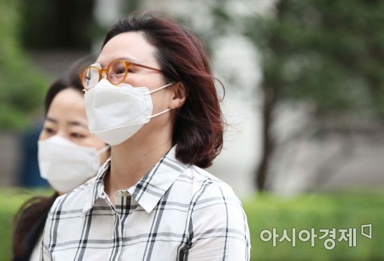 자녀 입시비리와 사모펀드 의혹 등으로 기소된 조국 전 법무부 장관의 부인 정경심 동양대 교수가 27일 서울 서초구 서울중앙지방법원에서 열린 공판에 출석하고 있다. /문호남 기자 munonam@