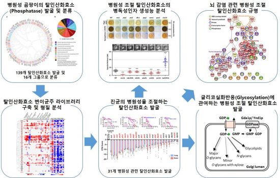 [아시아경제 이현주 기자] 연세대학교는 생명공학과 소속 반용선 교수 연구팀이 농림식품기술기획평가원의 농식품 R&D 과제 지원을 통해 '곰팡이 감염증 조절 탈인산화효소의 대량 발굴'에 성공했다고 28일 밝혔다. 이번 연구를 주관한 반 교수 연구팀은 뇌수막염 유발 병원성 곰팡이인 크립토코쿠스 네오포만스(Cryptococcus neoformans)를 모델 시스템으로 활용해 병원성 곰팡이 내의 탈인산화효소 유전자 114개를 게놈 수준에서 발굴했다. 또 이들에 대한 통합적 기능분석과 대용량 동물실험을 통해 곰팡이성 뇌수막염을 일으키는데 중요한 탈인산화효소 31개를 대량 발굴하는데 성공했다. 연구팀은 이 곰팡이 병원성을 조절하는 31개의 탈인산화효소에 대한 연구를 통해 이들 중 탈인산화효소들이 코립토코쿠스의 온도저항성, 병독성인자인 멜라닌과 캡슐 생성, 다양한 스트레스 조건에 대한 반응 등에 관여하는 것을 밝혔으며, 이 중 Xpp1, Ssu72, Siw14 및 Sit4 탈인산화효소가 크립토코쿠스의 뇌감염 과정에서 중요한 뇌-혈관장벽 부착과 통과에 관여함을 밝혔다. 이번 연구는 농림축산식품 미생물유전체전략연구사업단과 과학기술정보통신부 한국연구재단 기초연구사업(개인연구) 및 선도연구센터지원사업의 지원을 받았으며, 다학제적 과학 분야의 세계적 학술지인 네이처 커뮤니케이션즈에 게재됐다.