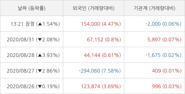 오늘 외국인은 남선알미늄을 15만 4000주 순매수 하고 기관은 2000주 순매도 하는 것으로 잠정 집계되고 있다. 최근 5일 동안 개인 투자자들은 6만 6343주 순매수 했고, 외국인과 기관은 각각 8만 2216주 순매도, 1898주 순매수 했다.