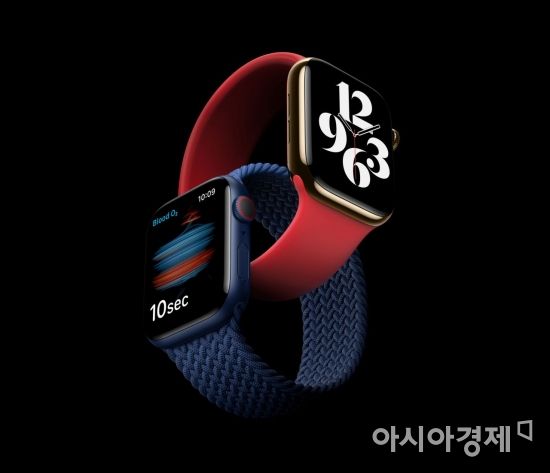 [아시아경제 한진주 기자] 애플이 혈중 산소포화도 기능을 탑재한 애플워치6와 대화면에 가성비로 무장한 30만원대 애플워치SE를 공개했다.