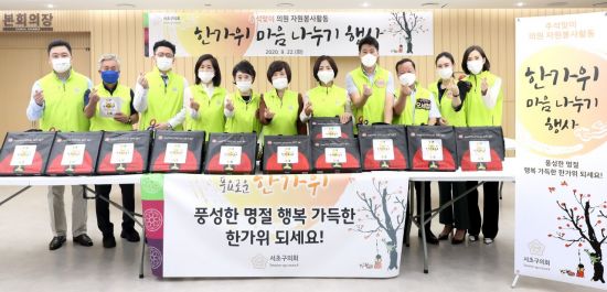 김안숙 의장은 “작은 선물이지만 따뜻한 마음을 소외된 이웃과 나누고자 마련했다. 코로나19로 더욱 지쳐있을 소외계층이 용기와 희망을 가질 수 있도록 서초구의회가 든든한 버팀목이 되겠다. 추석을 맞아 구민 모두가 건강하고 행복하게 명절을 보내기를 기원한다”고 밝혔다.