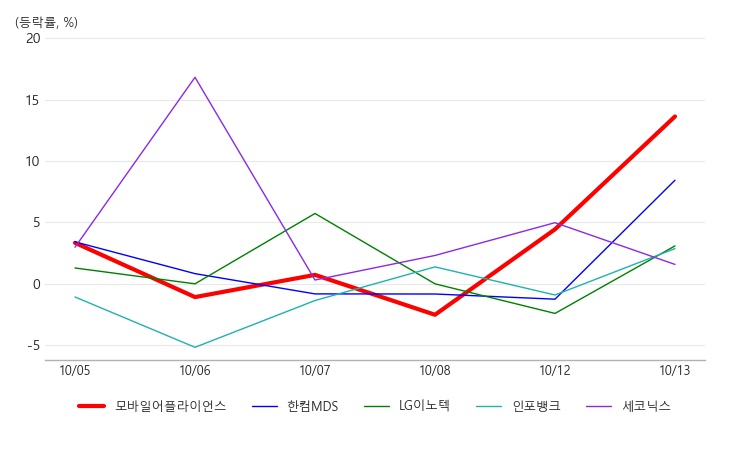 13일 스마트카(SMART CAR) 테마가 전일 대비 3.01% 상승하면서 강세를 보이는 가운데 관련주로 주목받고 있는 모바일어플라이언스가 전일 대비 8.13% 상승하며 급등하고 있다. 모바일어플라이언스는 내비게이션 및 블랙박스 제조업체로 알려져 있다.