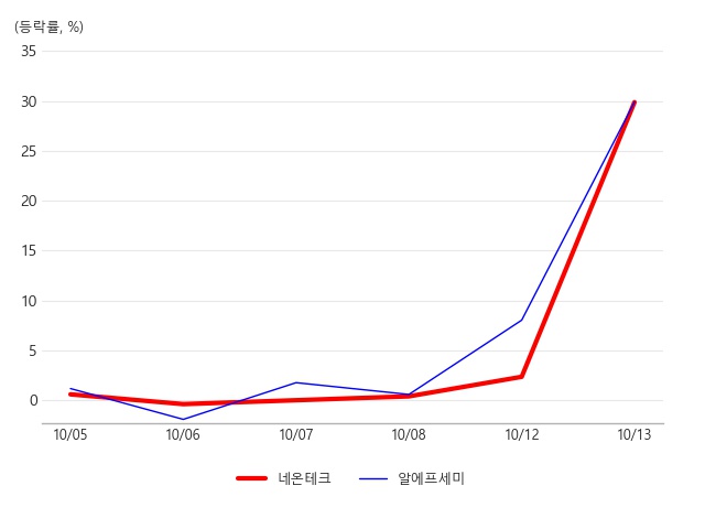 13일 MLCC(적층세라믹콘덴서) 테마가 전일 대비 6.60% 상승하면서 강세를 보이는 가운데 관련주로 주목받고 있는 네온테크가 전일 대비 29.89% 상승하며 급등하고 있다.