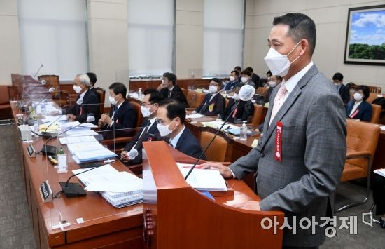 송데이비드호섭 스타벅스코리아 대표가 15일 국회에서 열린 환경노동위원회에 경제사회노동위원회 등에 대한 국정감사에 출석, 의원들 질의에 답하고 있다./윤동주 기자 doso7@