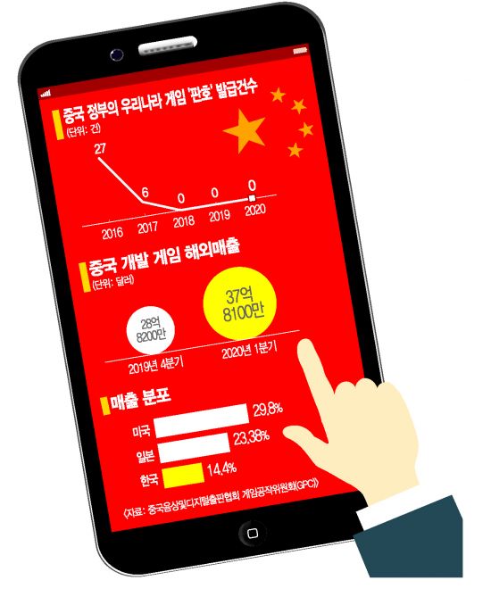 현재 국내 구글플레이 기준 매출 상위 20개 중에서 35%가 중국산이다. 과거 중국산 게임들은 그래픽이나 내용 등이 떨어진다는 평을 받았지만 최근 몇 년 새 급성장했다. 중국 게임의 한국시장 매출도 증가하고 있다. 중국음상및디지털출판협회 게임공작위원회(GPC)에 따르면 중국 자체개발게임의 해외 매출은 지난해 4분기 28억8200만달러에서 올해 1분기 37억8100만달러를 기록했다. 국가별 수출 비중을 보면 한국은 14.4%다. 중국 입장에서 한국은 미국(29.8%), 일본(23.38%)에 이어 세 번째로 큰 수출 시장이다.