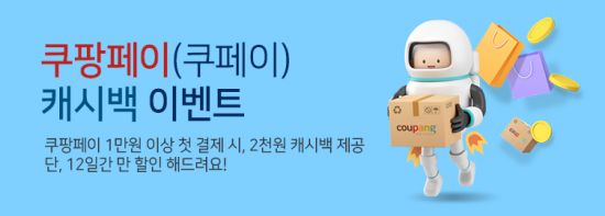이 이벤트는 이달 말일까지 진행되며, 쿠페이에 우리카드(법인, 기프트카드 및 선불카드 제외)를 등록한 고객이 건당 1만원이상 결제하면 2000원 캐시백(1인 1회 제공) 혜택이 제공된다. 단 해당 이벤트를 반드시 응모하고 이전에 쿠페이에 우리카드 결제이력이 없는 고객에 한해 혜택이 적용된다. 캐시백은 내달 9일 카드 결제계좌로 일괄입금될 예정이다.