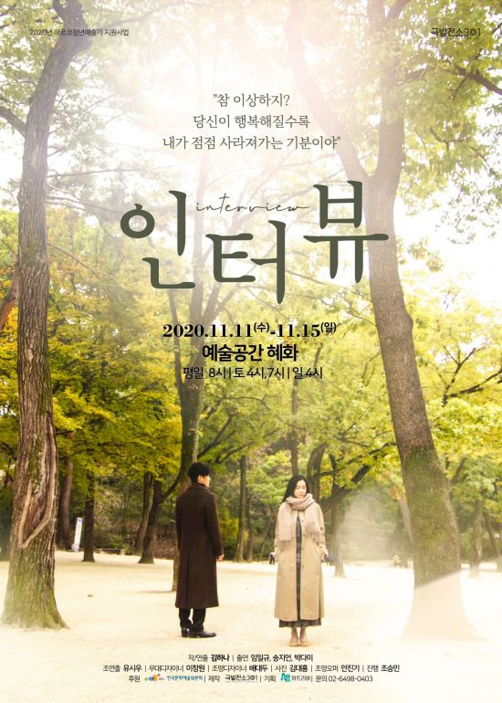 '인터뷰'는 2020 아르코 청년예술가 지원사업에 선정됐다. 11월11~15일 짧은 기간 공연하며 입장권은 27일 오후 3시부터 인터파크 티켓에서 예매할 수 있다.