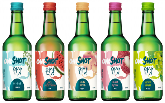 기존 소주와 맛과 향이 유사한 ‘오리지널’(14도)을 비롯해 ‘복숭아맛(10.1도)’, ‘리치맛(10.1도)’, ‘청포도맛(10.1도)’, ‘수박맛(10.1도)’이 있다. 새롭게 선보일 원샷소주는 기존 잎새주와 동일한 초록병에 담기며 용량은 360㎖다.